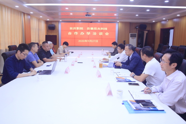 9月27日下午,安徽辰夫科技有限公司董事長孫彪一行到安慶職業(yè)技術(shù)學院洽商合作辦學事宜。安慶職院院長畢明生、副院長譚維奇,在綜合辦公樓第二會議室熱情招待了孫彪一行。