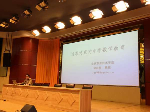 趙正俊教授帶學生觀摩了安慶職院李承鵬老師關(guān)于二重積分計算的公開課,聽取了公共基礎(chǔ)部金啟勝教授做的“追求詩意的中學數(shù)學教育”專題講座,分組觀看了相關(guān)專業(yè)的實踐教學環(huán)境和實踐教學情況。