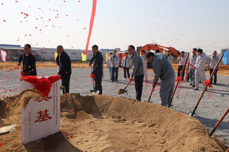 在奠基儀式上,華茂集團(tuán)黨委書記、董事長(zhǎng)、總經(jīng)理倪俊龍發(fā)表了熱情洋溢的致辭。他對(duì)多年來(lái)給予華茂發(fā)展關(guān)心、支持與幫助的各級(jí)領(lǐng)導(dǎo)和部門表示真誠(chéng)的感謝。2020年安徽華茂克服各種困難,主業(yè)盈利大幅上升,出口總額大幅上漲,特別是無(wú)紡布板塊,實(shí)現(xiàn)了銷售和利稅的快速增長(zhǎng),形成了國(guó)內(nèi)國(guó)際雙循環(huán)相互促進(jìn)的新發(fā)展格局。為全力以赴打好“十三五”攻堅(jiān)之戰(zhàn)、收官之戰(zhàn),安徽華茂在華欣公司現(xiàn)有8條純棉水刺無(wú)紡布生產(chǎn)基礎(chǔ)上,計(jì)劃再投資6條高速、高產(chǎn)、寬幅的純棉和化纖水刺無(wú)紡布生產(chǎn)線。項(xiàng)目建成將大大提高華茂無(wú)紡布產(chǎn)業(yè)的規(guī)模優(yōu)勢(shì)和市場(chǎng)競(jìng)爭(zhēng)力。