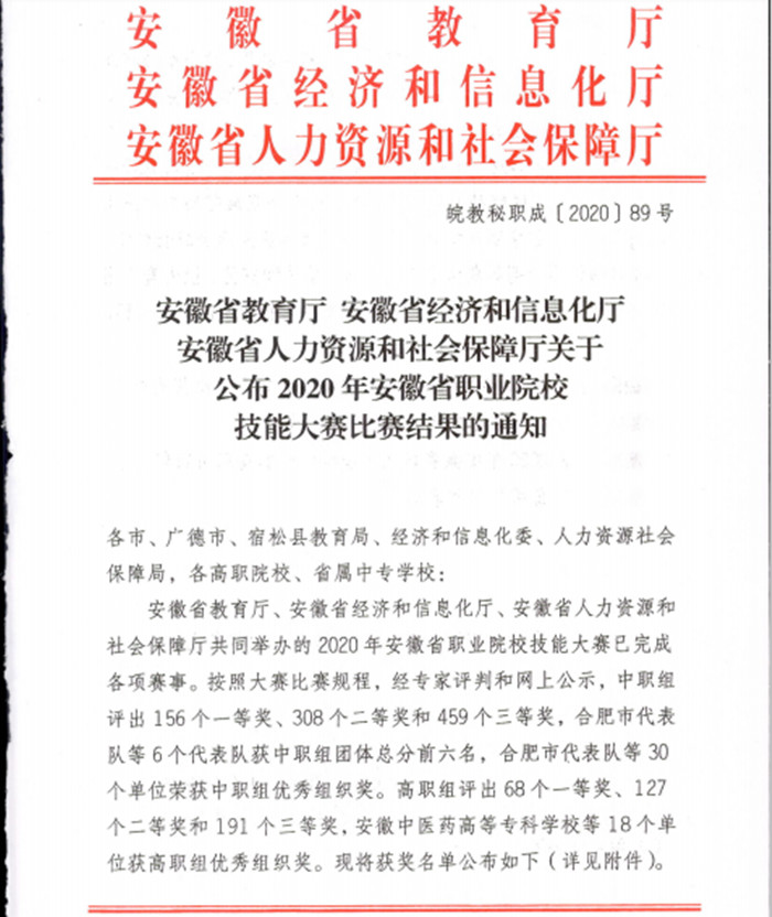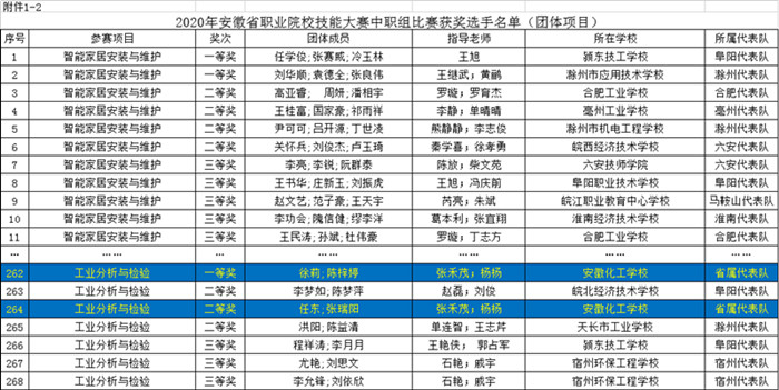 近日,省教育廳、經(jīng)信廳和人社廳聯(lián)合發(fā)文,公布2020年安徽省職業(yè)院校技能大賽比賽結(jié)果,安徽化工學(xué)校喜獲中職組工業(yè)分析與檢驗(yàn)賽項(xiàng)團(tuán)體一、二等獎。
