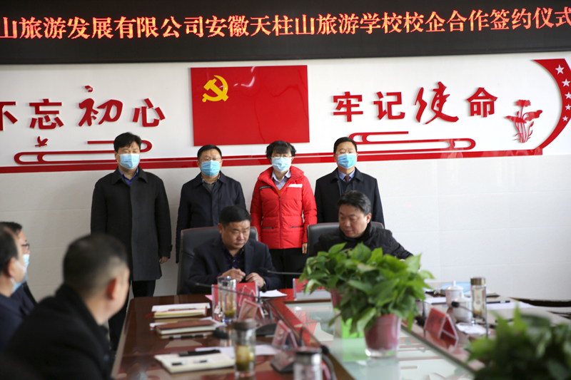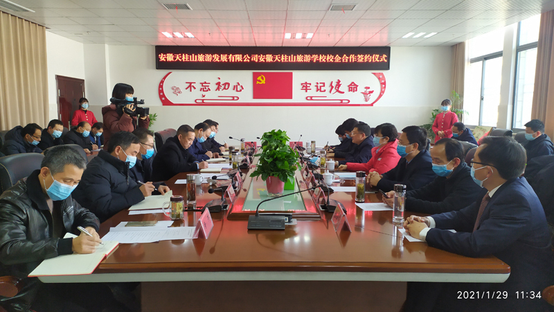 1月29日,安徽天柱山旅游學(xué)校與安徽天柱山旅游發(fā)展有限公司舉行校企合作簽約儀式。潛山市市委常委、天管會(huì)副主任涂高生出席并講話,副市長(zhǎng)蔡婷婷、趙偉出席并授牌,度假區(qū)、教育局、人社局、文旅體局、天柱山旅游學(xué)校、天柱山旅游公司等單位負(fù)責(zé)同志參加。