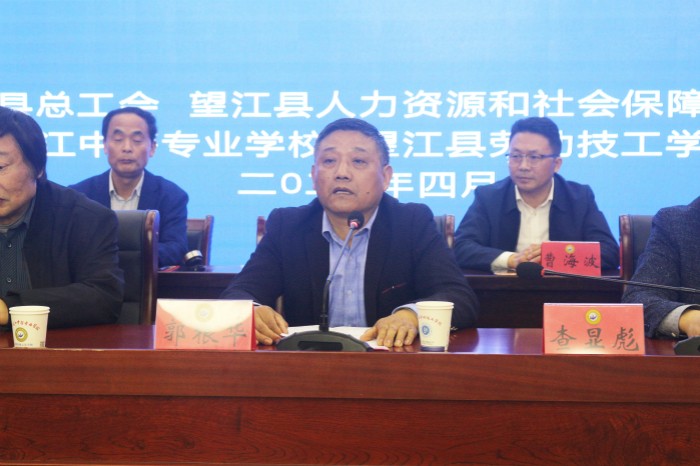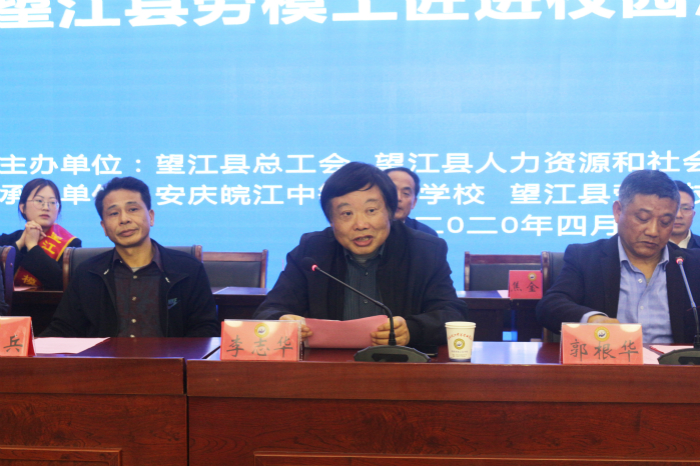 4月21日,望江縣勞模、工匠進校園活動總結(jié)大會在安慶皖江中等專業(yè)學校舉行。望江縣總工會常務副主席李志華、副主席郭根華,縣人社局機關工會副主席廖一兵,縣教育局職成股查顯彪等參加了會議。會議還邀請了活動協(xié)辦學校代表太慈中學校長曹海波、全國巾幗建功標兵張玉紅、安徽省“五一巾幗標兵”金長霞、安慶市勞模鮑成勝、檀金燕等出席。會議由縣總工會副主席郭根華主持,學校黨支部第一書記游沖在會上作了致辭。