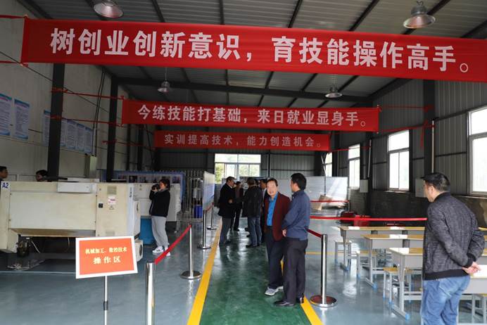 簽約儀式結(jié)束后,李克讓和姚彥和為安徽安慶技師學(xué)院東升校區(qū)揭牌,并實(shí)地參觀綜合實(shí)訓(xùn)室。