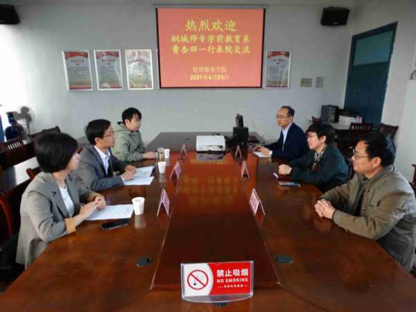 4月23日上午,桐城師范高等??茖W校學前教育系副主任曹杏田一行到安慶職業(yè)技術學院考察交流實訓室建設與管理工作。安慶職業(yè)技術學院管理服務學院院長、黨總支書記高潤霞在管理服務學院會議室接待了曹杏田一行,管理服務學院副院長楊厚松、幼兒發(fā)展與健康管理專業(yè)相關同志參加了交流。