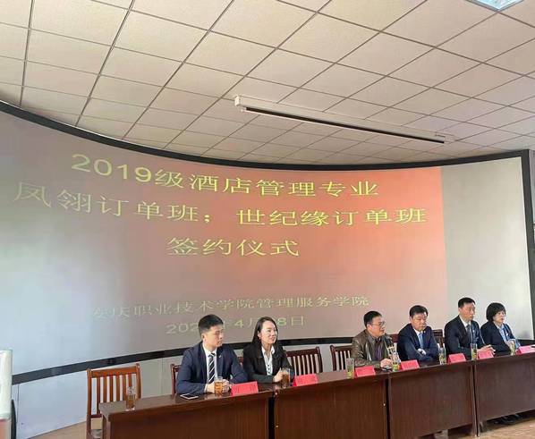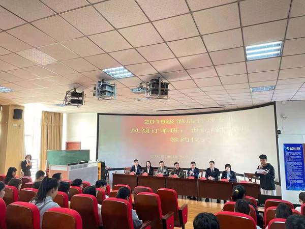 4月28日上午,安慶職業(yè)技術(shù)學(xué)院管理服務(wù)學(xué)院在3號教學(xué)樓216教室舉行校企業(yè)合作酒店管理專業(yè)“鳳翎訂單班”和“世紀緣訂單班”簽約儀式。管理服務(wù)學(xué)院副院長楊厚松、企業(yè)方代表、酒店管理專業(yè)部分教師和冠名班全體學(xué)生參加了此次簽約儀式。儀式由院長助理兼酒店管理專業(yè)建設(shè)負責(zé)人李敏老師主持。