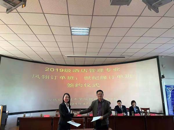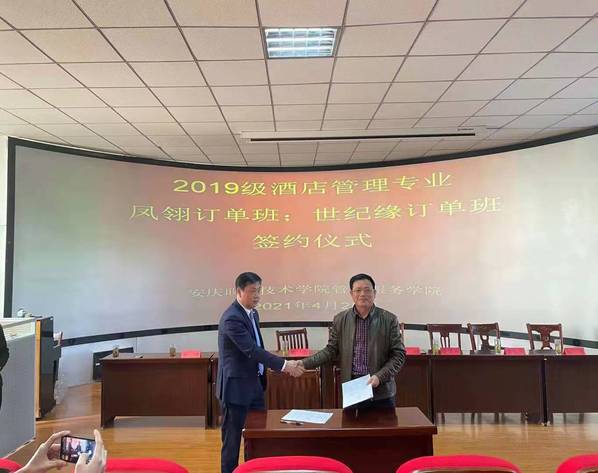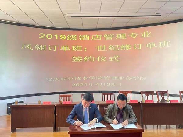最后,校方代表楊厚松分別與安慶碧桂園鳳凰大酒店、安慶世紀緣國際大酒店負責(zé)人進行了現(xiàn)場簽約。本次訂單班的成功簽約,為酒店管理專業(yè)下一步開展更多的校企聯(lián)合育人奠定了基礎(chǔ)。(文:李敏 圖:李光壽等 審核:楊厚松)