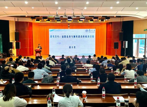 薛小榮以《建黨百年:道路選擇與制度建設的成功經(jīng)驗》為題,結(jié)合大量歷史事件,用生動通俗易懂的語言精辟透徹的講解了,新中國從“站起來”、“富起來”、“強起來”三個時代制度的選擇。生動闡述中國共產(chǎn)黨從國情出發(fā),三次歷史性的制度調(diào)整與功能優(yōu)化,既簡要概括了中國近代以來飛躍的歷史進程,又深刻揭示了中國特色社會主義不斷開辟發(fā)展新境界的歷史意義。報告深入淺出,內(nèi)容豐富,進一步增強了參會人員對中國共產(chǎn)黨人初心和使命的情感認同、理性認同、實踐認同,對黨的奮斗歷程和制度建設有了更加清晰的認識,在重溫黨的歷史過程中得到了新的教育和啟迪。(文:胡強圣 審稿:姚詠)