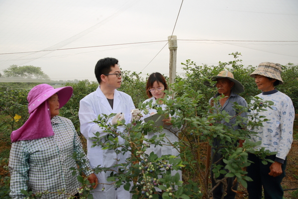 安慶職院教師劉冬、李萍兩位博士致力于農(nóng)產(chǎn)品精深加工技術(shù)、植物病蟲害等方面的研究,兩人領(lǐng)銜的農(nóng)林與服裝學(xué)院專業(yè)教師團(tuán)隊活躍在山坡田間和農(nóng)企車間,從土壤改良、病蟲草害綠色防控到藍(lán)莓系列產(chǎn)品精深加工等方面,為懷寧縣黃墩鎮(zhèn)藍(lán)莓企業(yè)提供技術(shù)服務(wù)。