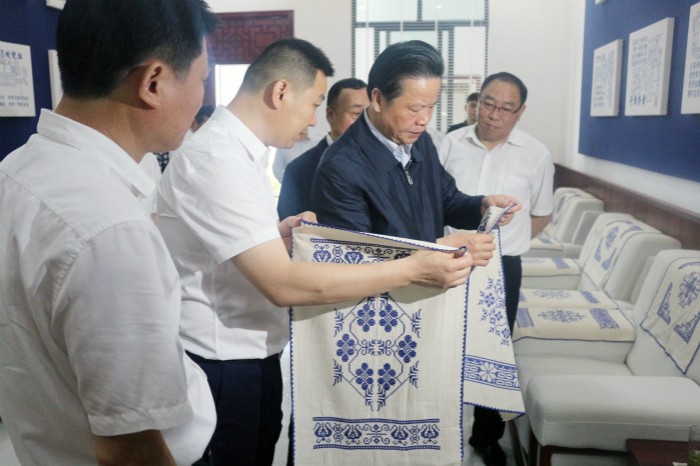 望江挑花至今已有1000多年歷史,2008年入選為國家非物質文化遺產名錄。多年來,安慶皖江中等專業(yè)學校在望江挑花的保護、傳承、研發(fā)方面做了大量工作。張昌爾一行實地參觀了望江挑花保護與傳承基地,聽取該校董事長吳燦及非遺傳承人介紹挑花工藝、制作流程,詳細了解挑花產業(yè)發(fā)展情況。張昌爾指出,望江挑花作為國家非物質文化遺產,做工精細、產品精美,是望江重要的文化資源。要積極做好傳承工作,充分挖掘文化內涵,不斷創(chuàng)新載體,加強人才培養(yǎng),讓挑花工藝發(fā)揚光大,助力鄉(xiāng)村振興。要利用國家非物質文化遺產這一品牌,積極搭建平臺,開展招商引資、招賢引智,賦能挑花產業(yè)高質量發(fā)展。