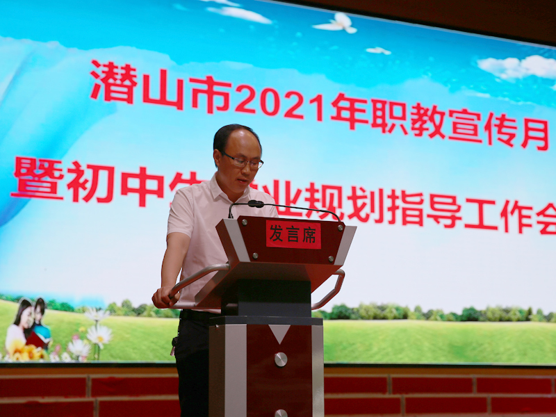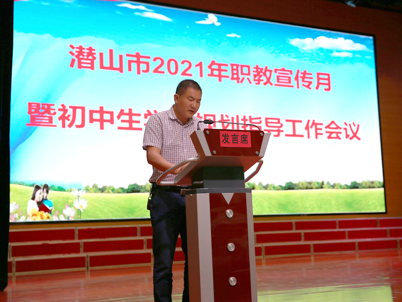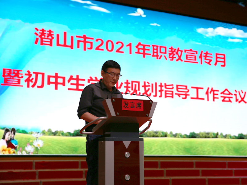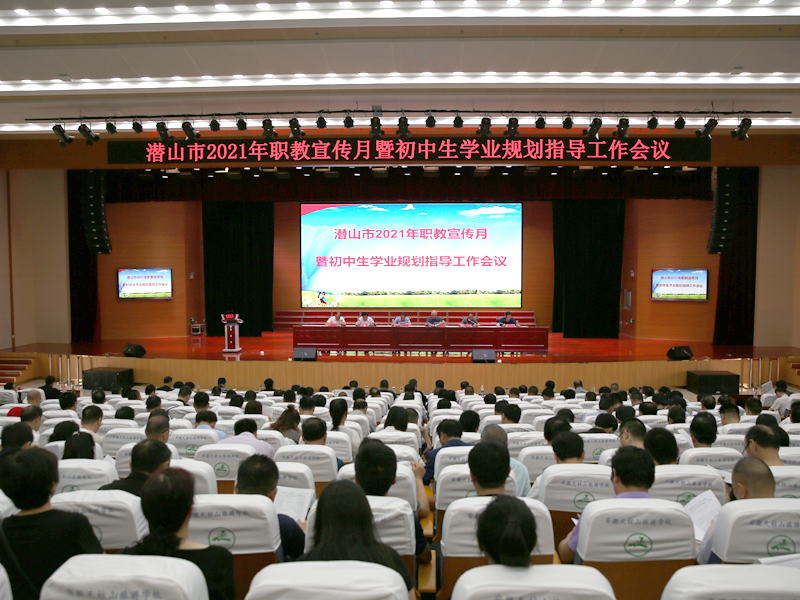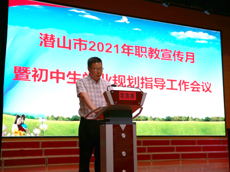 2021年5月14日,在安慶市職業(yè)教育宣傳月活動(dòng)之際,潛山市教育局在安徽天柱山旅游學(xué)校召開了潛山市2021年職業(yè)教育宣傳月暨初中生學(xué)業(yè)規(guī)劃指導(dǎo)工作會(huì)議,部署安排職教宣傳和初中生學(xué)業(yè)規(guī)劃指導(dǎo)工作。此次會(huì)議是2021年全市職教宣傳和招生工作的動(dòng)員大會(huì),開啟了2021年潛山市職業(yè)教育宣傳月活動(dòng)的序幕。
