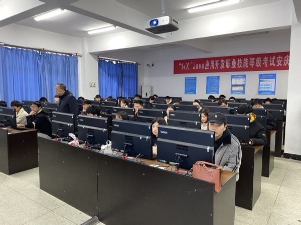 12月25日上午,“1+X”Java應(yīng)用開發(fā)職業(yè)技能等級(jí)證書考試在安慶職業(yè)技術(shù)學(xué)院圖文信息中心502實(shí)訓(xùn)室順利舉行,安慶職院副校長(zhǎng)譚維奇到考試到場(chǎng)巡視,實(shí)驗(yàn)實(shí)訓(xùn)中心主任李進(jìn)恩,信息技術(shù)學(xué)院院長(zhǎng)疏國(guó)會(huì)陪同。來(lái)自信息技術(shù)學(xué)院的55名考生參加了考試。