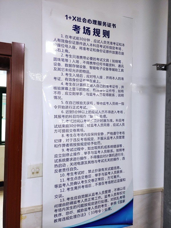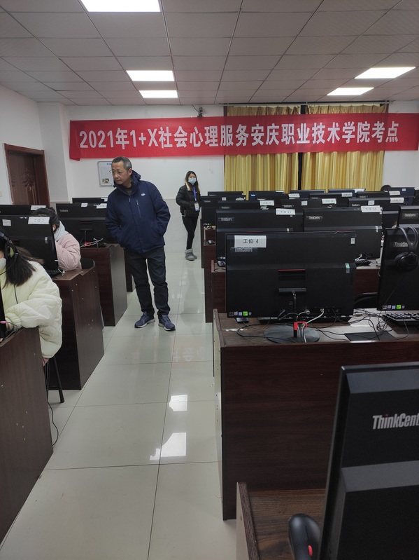 12月25日和12月26日下午,安慶職業(yè)技術(shù)學(xué)院管理服務(wù)學(xué)院“1+X”社會(huì)心理服務(wù)(中級(jí))職業(yè)技能等級(jí)證書認(rèn)證考試在圖文信息中心508、509機(jī)房順利舉行,2019級(jí)、2020級(jí)幼兒發(fā)展與健康管理專業(yè)共計(jì)100名同學(xué)參加了考試??荚嚻陂g,實(shí)訓(xùn)中心李進(jìn)恩主任、管理服務(wù)學(xué)院院長(zhǎng)高潤(rùn)霞、副院長(zhǎng)楊厚松現(xiàn)場(chǎng)督導(dǎo)考務(wù)工作。