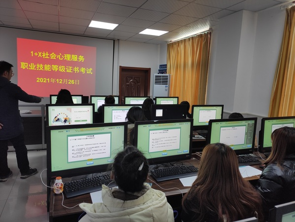 “1+X”社會(huì)心理服務(wù)職業(yè)技能等級(jí)證書考試采取人機(jī)語音交互模式進(jìn)行。為搞好此次考試,學(xué)校高度重視,從師資培訓(xùn)到各種資源協(xié)調(diào)均給予了大力支持:7月份,委派4名嬰幼兒托育服務(wù)與管理專業(yè)教師參加1+X社會(huì)心理服務(wù)職業(yè)技能等級(jí)證書師資培訓(xùn),并順利獲得培訓(xùn)師資格;10月份組織2019級(jí)、2020級(jí)幼兒發(fā)展與健康管理專業(yè)學(xué)生報(bào)名;11-12月份開展了學(xué)生考證培訓(xùn)工作,最終確??荚噲A滿完成。(文、圖:何世亮 審稿:楊厚松)