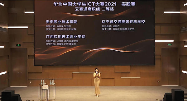12月25日,由中國(guó)高等教育學(xué)會(huì)指導(dǎo)、華為技術(shù)公司主辦的,“華為中國(guó)大學(xué)生ICT大賽2021全國(guó)總決賽”頒獎(jiǎng)典禮以在線的方式向全網(wǎng)直播。安慶職業(yè)技術(shù)學(xué)院信息技術(shù)學(xué)院選派的“高職云”賽道代表隊(duì)榮獲二等獎(jiǎng)。