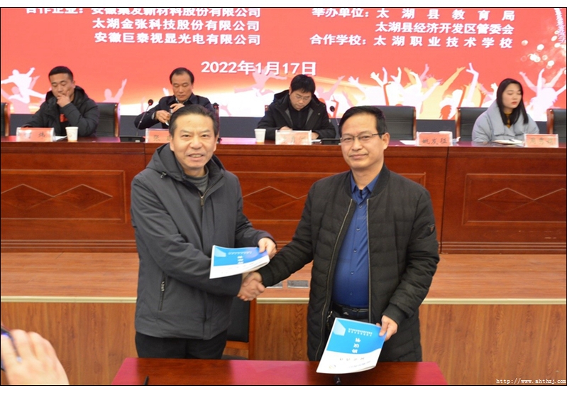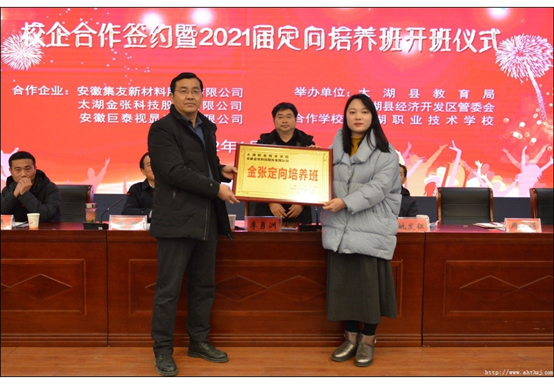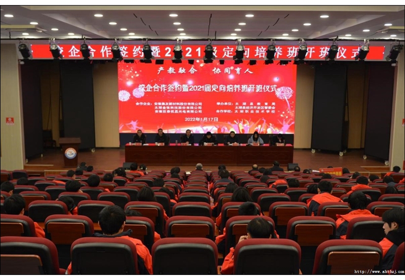 為進一步推進產(chǎn)教融合,加強校企合作,提升技能型人才培養(yǎng)質(zhì)量,增強職業(yè)教育適應(yīng)性,1月17日上午,太湖縣教育局、縣經(jīng)濟開發(fā)區(qū)管委會在太湖職業(yè)技術(shù)學(xué)校科研樓多功能廳舉行校企合作簽約暨2021級定向培養(yǎng)班開班儀式。