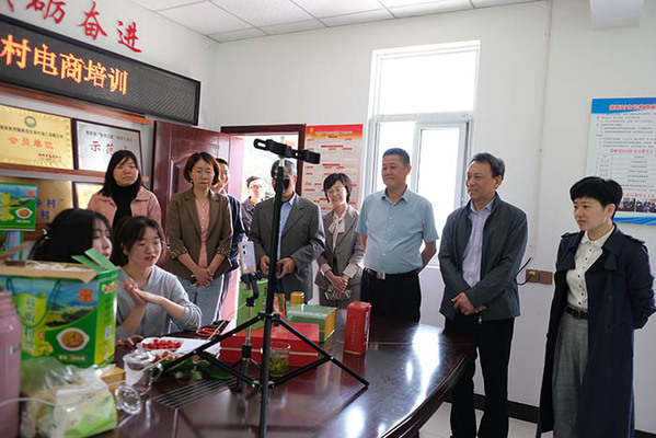 緊接著,童宏葵來到網(wǎng)絡直播室,看望正在這里指導直播帶貨的教師徐奕勝和王瑞陽、孫澤芳主播。在離村部不遠的一片茶葉園里,幾十名茶農正在聽章杰義老師講授茶葉種植技術,童宏葵走進田間課堂,仔細察看上課效果,親切地詢問大家是否聽得懂老師講課。并抽空和茶農交流茶樹常規(guī)繁育和茶樹修剪技術、病蟲害預防、土壤管理、施肥技術、茶樹采摘注意事項等,贏得茶農們陣陣掌聲。在生豬養(yǎng)殖大戶段迎春養(yǎng)殖場,十幾位養(yǎng)豬戶正在聽畜牧局專家董尚青講課,童宏葵詳細詢問了段迎春家飼養(yǎng)的生豬品種、銷售渠道和常見病的預防及處理情況,并讓他經(jīng)常和學校保持聯(lián)系,及時得到學校在技術方面的幫助。