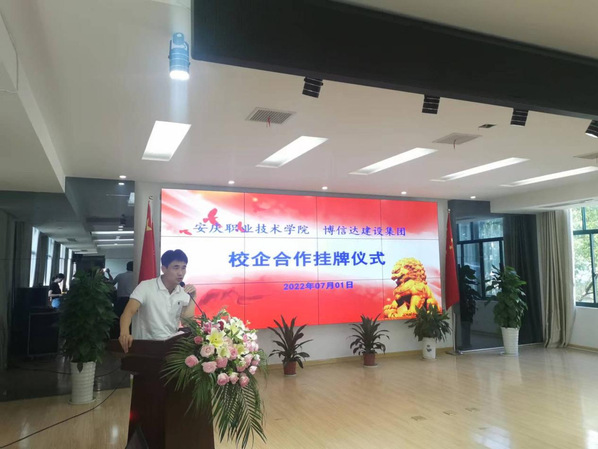 為進一步深化校企合作協(xié)同育人,7月1日下午,安慶職業(yè)技術學院與博信達建設集團有限公司隆重舉行校企合作揭牌儀式,安慶職院校長畢明生教授、博信達建設集團有限公司董事長汪賢勇出席揭牌儀式,企業(yè)各職能部門負責同志、安慶職院建筑工程學院負責人及相關教師代表參加揭牌儀式。