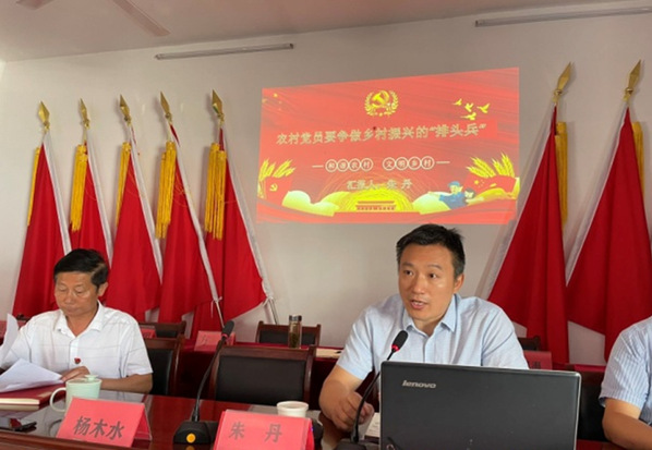 會上,副校長朱丹作了題為《農(nóng)村黨員要爭做鄉(xiāng)村振興的“排頭兵”》黨課輔導(dǎo)。他用生動的語言、豐富的事例和大量的史實(shí),詳細(xì)闡述了共產(chǎn)黨員在黨的百年發(fā)展史中所發(fā)揮的作用,勉勵在座的農(nóng)村黨員要在鄉(xiāng)村振興中發(fā)揮應(yīng)有的作用。黨課報告主題鮮明,案例豐富,內(nèi)容深刻,講解透徹,充分展現(xiàn)了中國共產(chǎn)黨人的戰(zhàn)斗堡壘作用。他強(qiáng)調(diào),全村黨員要深入學(xué)習(xí)中國共產(chǎn)黨百年奮斗的歷史經(jīng)驗(yàn),把黨史學(xué)習(xí)教育內(nèi)化于心、外化于行,勤學(xué)習(xí)、多思考、埋頭苦干、真抓實(shí)干,在鄉(xiāng)村振興中發(fā)揮“排頭兵”的作用。以鄉(xiāng)村振興的豐碩成果迎接黨的二十大勝利召開。