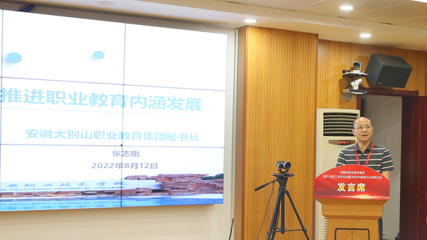 812日, 2022年安徽省集團(tuán)化辦學(xué)研討會,在安慶職院行政樓第二會議室舉行。校黨委書記童宏葵致辭,安慶職教集團(tuán)理事長、校長畢明生主持。