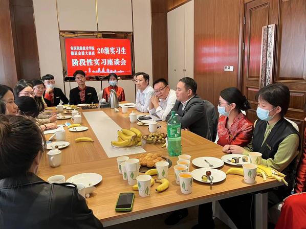 隨后,團(tuán)隊(duì)一行來(lái)到德辰金陵大酒店看望目前在酒店實(shí)習(xí)工作的20級(jí)酒店管理與數(shù)字化專業(yè)學(xué)生。實(shí)習(xí)座談會(huì)上,每一位實(shí)習(xí)生暢談了4個(gè)月以來(lái)的實(shí)習(xí)收獲和感受,大家認(rèn)為雖然實(shí)習(xí)工作有時(shí)候很辛苦,但是大家學(xué)到了很多學(xué)校和書本上學(xué)不到的東西,職場(chǎng)意識(shí)大大提升、與人交流更加自信、團(tuán)結(jié)協(xié)作更加默契。酒店方總經(jīng)理、人力資源總監(jiān)、餐飲總監(jiān)等就實(shí)習(xí)生實(shí)習(xí)期間的表現(xiàn)給予了充分的贊賞和肯定,同時(shí)也給同學(xué)們提出了中肯的意見(jiàn)和建議。老師們對(duì)同學(xué)們的實(shí)習(xí)表現(xiàn)、收獲、成長(zhǎng)表示祝賀,感到欣慰,勉勵(lì)實(shí)習(xí)生再接再厲,堅(jiān)守本職,更要做好實(shí)習(xí)后的職業(yè)生涯規(guī)劃,深耕酒店行業(yè),努力成為一名現(xiàn)代服務(wù)業(yè)優(yōu)秀的出色的酒店人。(文:陳文玲 圖:張 紅 審稿:陳 穎)