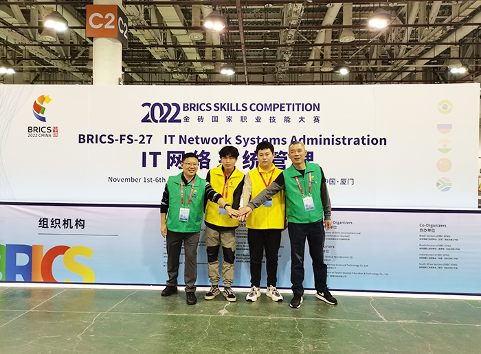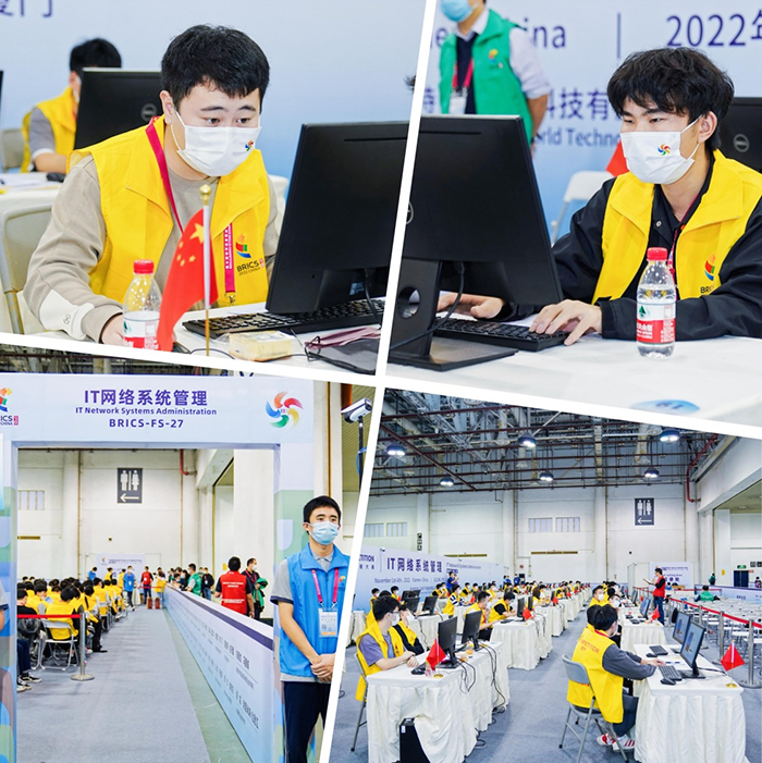 11月1日至6日,2022 年金磚國家職業(yè)技能大賽(決賽)在廈門市國際會展中心舉行,大賽共設(shè)置了26個賽項,來自金磚五國的職業(yè)院校師生共同參與這些賽項的競逐,由安慶職業(yè)技術(shù)學(xué)院信息技術(shù)學(xué)院陳富漢、鞏緒林兩位老師指導(dǎo)的計算機網(wǎng)絡(luò)技術(shù)專業(yè)胡駿、童都兩位同學(xué)組成的團隊作為安徽省代表隊之一參加了“IT網(wǎng)絡(luò)系統(tǒng)管理”項目比賽。11月8日,大賽組委會公布了中國參賽隊獲獎名單,安慶職院信息技術(shù)學(xué)院代表隊獲得金磚國家職業(yè)技能大賽(決賽)三等獎。