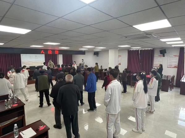 八段錦作為中華傳統(tǒng)健身功法,尤其適合老年人。學(xué)院何旺老師事前認(rèn)真自學(xué),活動(dòng)現(xiàn)場(chǎng)耐心指導(dǎo)老人們揣摩動(dòng)作要領(lǐng),老人們?cè)谝徽幸皇街斜憩F(xiàn)出極大的學(xué)習(xí)興趣與熱情,活動(dòng)氣氛達(dá)到高潮。大家紛紛表示,八段錦舒展了身體,抖擻了精神,今后要經(jīng)常練習(xí)八段錦來(lái)強(qiáng)身健體。