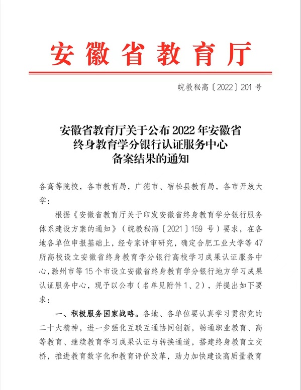 近日,省教育廳公布了首批安徽省終身教育學(xué)分銀行高校學(xué)習(xí)成果認(rèn)證服務(wù)中心名單,安慶職業(yè)技術(shù)學(xué)院成功入選。