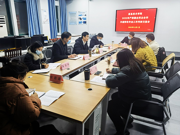 為全面評價學(xué)院校企合作辦學(xué)情況,更好地推進校企合作辦學(xué)專業(yè)發(fā)展,12月1日下午,安慶職業(yè)技術(shù)學(xué)院信息技術(shù)學(xué)院組織開展了2022年產(chǎn)教融合校企合作共建特色專業(yè)工作考核交流會。天津迅騰科技集團駐校負(fù)責(zé)人陳剛、安徽辰夫科技駐校負(fù)責(zé)人何莉莉、學(xué)院管理人員參加了會議,會議由信息技術(shù)學(xué)院黨總支書記、院長疏國會教授主持。