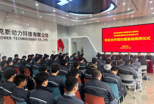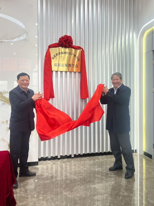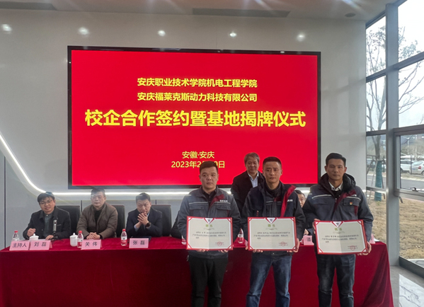 2月10日上午,集團秘書長、安慶職業(yè)技術(shù)學(xué)院黨委副書記李克讓,安慶經(jīng)開區(qū)黨工委委員、紀監(jiān)委書記嚴衛(wèi)江齊聚安慶福萊克斯動力科技有限公司,出席安慶職院與安慶福萊克斯公司戰(zhàn)略合作簽約儀式并講話,共同為“安慶職教集團汽車產(chǎn)業(yè)學(xué)院福萊克斯教學(xué)基地”揭牌。安慶職院相關(guān)職能部門、機電工程學(xué)院相關(guān)負責(zé)人,經(jīng)開區(qū)人社局相關(guān)負責(zé)同志,福萊克斯相關(guān)負責(zé)人以及首屆“福萊克斯班”學(xué)員共同見證了這一歷史性時刻。