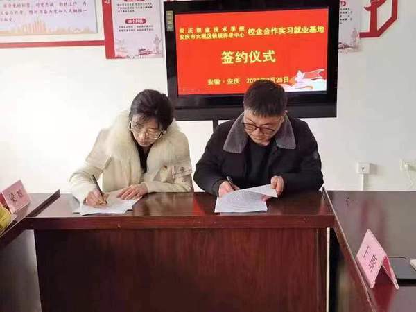 隨后,校企雙方共同簽署了《校企合作實(shí)習(xí)就業(yè)教研基地合作協(xié)議書》,校企雙方領(lǐng)導(dǎo)共同為“安慶職業(yè)技術(shù)學(xué)院校外實(shí)習(xí)就業(yè)基地”揭牌。