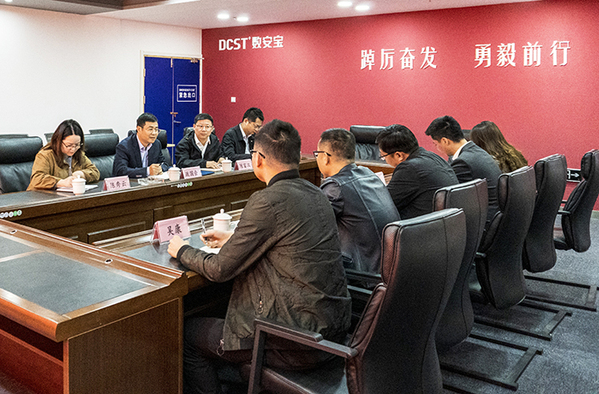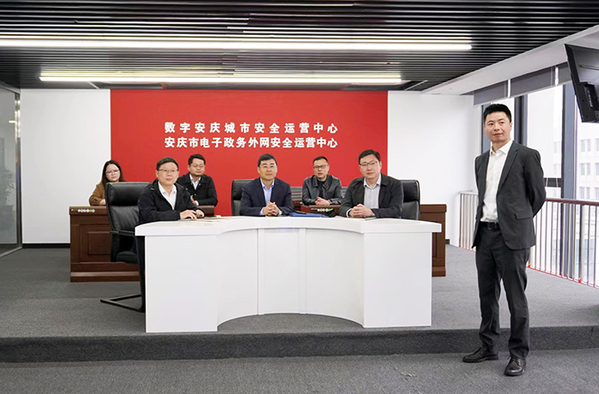 在調(diào)研安徽數(shù)安寶信息科技有限公司時,疏國會一行參觀了數(shù)安寶企業(yè)展廳和運營指揮中心。該公司總經(jīng)理儲偉詳細介紹了數(shù)安寶公司發(fā)展歷程、資質(zhì)榮譽、經(jīng)營現(xiàn)狀等情況。公司運營總監(jiān)為大家介紹和演示了昊天安全運營平臺和祝融攻防演練平臺。