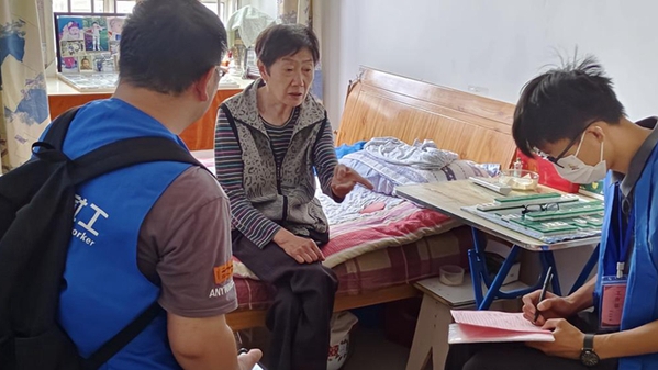 社區(qū)工作人員帶領(lǐng)志愿者們來到順安南苑小區(qū)獨居老人的家中進(jìn)行慰問,查看居住環(huán)境、排查安全隱患,并對于老人的生活需求、身體健康情況,進(jìn)行詳細(xì)的詢問及記錄。