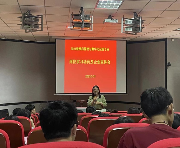 為引導(dǎo)學(xué)生做好實(shí)習(xí)前的各項(xiàng)準(zhǔn)備工作,扎實(shí)推進(jìn)2021級(jí)學(xué)生崗位實(shí)習(xí)工作順利、有序開(kāi)展。5月31日和6月1日安慶職業(yè)技術(shù)學(xué)院管理服務(wù)學(xué)院酒店管理與數(shù)字化運(yùn)營(yíng)專業(yè)與旅游管理專業(yè)分別召開(kāi)了實(shí)習(xí)動(dòng)員會(huì)和企業(yè)宣講會(huì),管理服務(wù)學(xué)院院長(zhǎng)陳穎、副院長(zhǎng)李敏、專業(yè)建設(shè)負(fù)責(zé)人、輔導(dǎo)員、團(tuán)隊(duì)專業(yè)教師及2021級(jí)170余名實(shí)習(xí)學(xué)生參加會(huì)議。