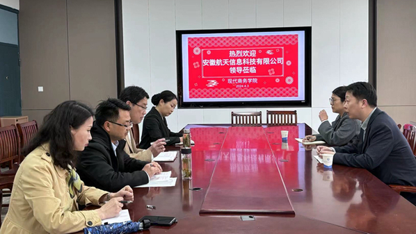 4月3日上午,安徽航天信息科技有限公司一行來到安慶職業(yè)技術(shù)學(xué)院洽談合作,安慶職院現(xiàn)代商務(wù)學(xué)院黨總支書記、院長金啟勝熱情接待了安徽航天信息科技有限公司的來賓。