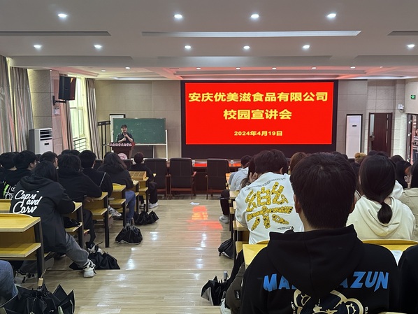宣講會上,安慶優(yōu)美滋食品有限公司市場部經(jīng)理何文斌通過播放宣傳片、PPT展示、面對面交流等方式向同學(xué)們詳細(xì)介紹了企業(yè)的發(fā)展概況、職業(yè)發(fā)展方向、人員需求等信息。同學(xué)們就企業(yè)環(huán)境、崗位培訓(xùn)、薪資待遇、單位用人需求等方面進(jìn)行了積極提問,何文斌耐心的為同學(xué)們一一解答,現(xiàn)場氣氛十分熱烈。