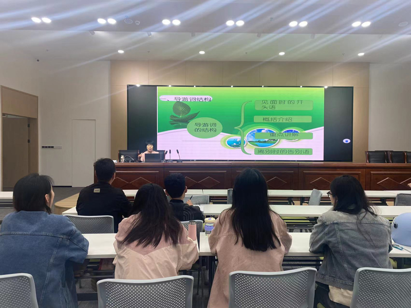 本次培訓班為期10天,其中理論培訓3天,根據實際情況,在原來導游業(yè)務、導游基礎、模擬導游、天柱山導游實務等課程基礎上,新增了紅十字知識及救護概論和常見急癥、意外傷害、突發(fā)事件處理等新課程,從理論到實操極大增強了課程實用性;景區(qū)實習5天,由有經驗的老導游帶領學員輪流現場實習模擬導游講解,地點涵蓋大部分潛山A級景區(qū),讓學員能以最快速度成長為一名業(yè)務能力過硬的講解員;面試考核2天,內容為形象展示、景點講解、才藝展示等。學校旅游專業(yè)教師葛愛云被邀請對學員進行理論培訓,并作為導游面試評委全程參與考核。
