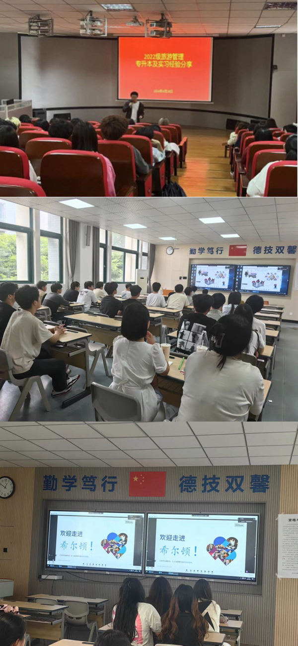 針對(duì)有求職意向的學(xué)生,通過(guò)學(xué)院網(wǎng)站、學(xué)工微信群、班級(jí)群等信息發(fā)布平臺(tái)及時(shí)向畢業(yè)生發(fā)布各類(lèi)就業(yè)信息,力爭(zhēng)實(shí)現(xiàn)“就業(yè)信息全覆蓋”。邀請(qǐng)上海祥源希爾頓HR、安慶思佰特總經(jīng)理開(kāi)展了專(zhuān)場(chǎng)講座,從行業(yè)前沿動(dòng)態(tài)、實(shí)際工作情況、求職面試技巧等方面幫助學(xué)生提升求職能力。同時(shí),學(xué)院積極發(fā)動(dòng)校友資源,邀請(qǐng)往屆優(yōu)秀畢業(yè)生代表進(jìn)校宣講,如2016屆酒店管理專(zhuān)業(yè)畢業(yè)生李正--寧波錢(qián)湖國(guó)賓館人事經(jīng)理、2023屆旅游管理專(zhuān)業(yè)畢業(yè)生韓信哲--溫州暢旅國(guó)際旅游有限公司合伙人等優(yōu)秀校友,同2022級(jí)學(xué)生分享成長(zhǎng)經(jīng)歷、傳授求職及職場(chǎng)工作經(jīng)驗(yàn),用朋輩的榜樣作用引導(dǎo)學(xué)生轉(zhuǎn)變就業(yè)觀念。