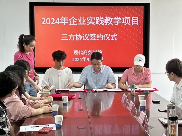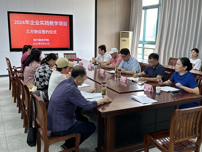 9月25日,安慶職業(yè)技術(shù)學院現(xiàn)代商務學院與安徽云霽電子商務有限公司的2024年學生電商客服崗位實訓教學項目簽約儀式在學校3號教學樓510會議室舉行。云霽電商公司總經(jīng)理汪義德及公司相關(guān)領導,現(xiàn)代商務學院黨總支書記、院長金啟勝,該院學生工作負責人,電子商務專業(yè)負責人、跨境電子商務專業(yè)負責人以及相關(guān)班級輔導員和學生代表參加簽約儀式,會議及儀式由該院教學工作負責人主持。