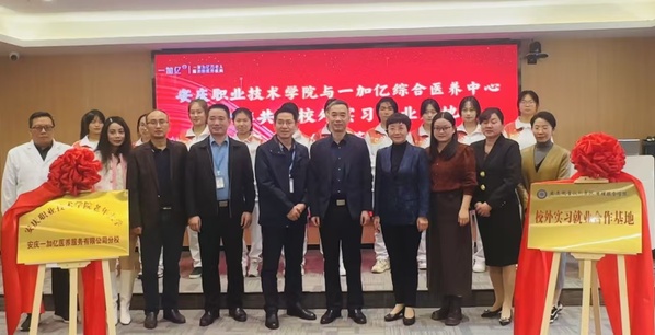 為響應(yīng)國(guó)家實(shí)施積極應(yīng)對(duì)人口老齡化戰(zhàn)略,強(qiáng)化職業(yè)教育與產(chǎn)業(yè)企業(yè)需求相對(duì)接,積極助力推進(jìn)老齡事業(yè)、老齡產(chǎn)業(yè)和養(yǎng)老專(zhuān)業(yè)協(xié)同發(fā)展,10月24日上午,安慶職業(yè)技術(shù)學(xué)院管理服務(wù)學(xué)院和老年大學(xué)與安慶一加億綜合醫(yī)養(yǎng)中心,舉行合作共建“安慶職業(yè)技術(shù)學(xué)院管理服務(wù)學(xué)院一加億校外實(shí)習(xí)就業(yè)基地”和“安慶職業(yè)技術(shù)學(xué)院老年大學(xué)一加億分?!焙灱s活動(dòng)。安慶職院黨委委員、組織部部長(zhǎng)高潤(rùn)霞、安慶市民政局四級(jí)調(diào)研員周志遠(yuǎn)、安慶一加億醫(yī)養(yǎng)服務(wù)有限公司法人代表劉林志出席活動(dòng),管理服務(wù)學(xué)院、繼續(xù)教育學(xué)院相關(guān)負(fù)責(zé)同志及師生代表參加了簽約儀式。