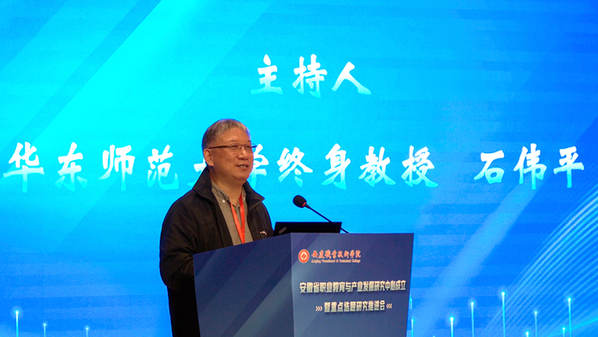 石偉平教授在主持課題發(fā)布和主旨報(bào)告環(huán)節(jié)中,特別表達(dá)了對(duì)研究中心未來(lái)發(fā)展的期許。他指出,在新質(zhì)生產(chǎn)力發(fā)展過(guò)程中,產(chǎn)教融合不僅是職業(yè)教育也是高等教育的重要課題。作為與產(chǎn)業(yè)升級(jí)、與經(jīng)濟(jì)發(fā)展聯(lián)系最為密切的類(lèi)型教育,職業(yè)教育要在推進(jìn)產(chǎn)教融合中作出更加突出的貢獻(xiàn)。統(tǒng)籌整合資源成立職業(yè)教育與產(chǎn)業(yè)發(fā)展研究中心,是安徽職業(yè)教育發(fā)展的迫切需要,也是安徽產(chǎn)業(yè)經(jīng)濟(jì)發(fā)展的迫切需要,希望研究中心能夠盡快建設(shè)成為全國(guó)職業(yè)教育研究的重要陣地。