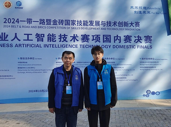 近年來,學(xué)校和信息技術(shù)學(xué)院高度重視大賽選手選拔和集訓(xùn)工作,將組隊(duì)參加金磚大賽作為融入國際交流合作、提升人才培養(yǎng)質(zhì)量的一項(xiàng)重要舉措。學(xué)院將繼續(xù)秉承“以賽促教、以賽促學(xué)、以賽促改、賽課融通、賽訓(xùn)結(jié)合”的競(jìng)賽理念,充分發(fā)揮技能競(jìng)賽的引領(lǐng)作用,為更多學(xué)生提供展示自我、鍛煉能力的機(jī)會(huì),努力打造商業(yè)人工智能技術(shù)領(lǐng)域高素質(zhì)技術(shù)技能人才培養(yǎng)高地。(文、圖:陳小祥 審稿:疏國會(huì))