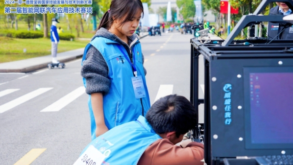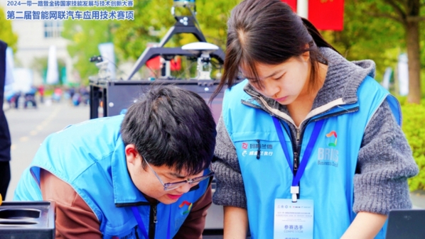 大賽首日,新能源汽車仿真賽項拉開帷幕。參賽選手們需要在限定時間內(nèi),通過計算機仿真技術(shù)模擬新能源汽車的運行狀態(tài),對車輛性能進(jìn)行仿真分析和優(yōu)化。次日,新能源汽車裝調(diào)賽項火熱進(jìn)行,該賽項要求選手們對智能網(wǎng)聯(lián)汽車進(jìn)行細(xì)致的裝配、調(diào)試和標(biāo)定,確保車輛各項功能正常運行。大賽最后一天,車路協(xié)同賽項成為焦點。該賽項要求選手在規(guī)定時間內(nèi)完成智能路側(cè)端設(shè)備的安裝、調(diào)試、通信連接、故障排除。張晴晴和彭耀祥展現(xiàn)出卓越的技術(shù)水平和團(tuán)隊協(xié)作能力,精心裝配,耐心調(diào)試,確保每一環(huán)節(jié)都達(dá)到最佳狀態(tài)。