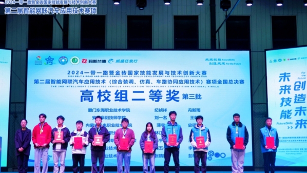 10月31日至11月2日,2024“一帶一路”暨金磚國家技能發(fā)展與技術(shù)創(chuàng)新大賽之第二屆智能網(wǎng)聯(lián)汽車應(yīng)用技術(shù)(綜合裝調(diào)、仿真、車路協(xié)同應(yīng)用技術(shù))賽項全國總決賽在宣城職業(yè)技術(shù)學(xué)院舉行。安慶職業(yè)技術(shù)學(xué)院機電工程學(xué)院舒滿征老師和單家正老師指導(dǎo)的張晴晴和彭耀祥兩位學(xué)生獲得高校組全國二等獎,教師組鮑成和邱雨兩位老師獲得職工組全國三等獎,舒滿征和單家正老師獲得優(yōu)秀指導(dǎo)教師稱號。