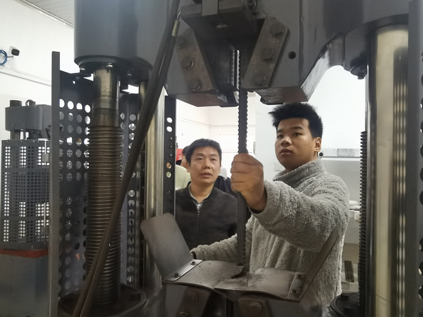 實訓(xùn)教學(xué)按照細(xì)分子模塊,在各個專業(yè)實驗室分組輪流進(jìn)行,利用來自在建工程的各類檢測材料,嚴(yán)格按照行業(yè)標(biāo)準(zhǔn)與規(guī)范,分別由11位企業(yè)實驗師手把手的示范指導(dǎo),學(xué)生一一動手操作完成。來自24級建工1班的琬玉同學(xué)在操作完鋼筋抗拉試驗后興奮的說:“剛開始,我看企業(yè)指導(dǎo)老師給鋼筋加拉力時躲得遠(yuǎn)遠(yuǎn)的,害怕聽到鋼筋崩斷的聲音,等到自己上手操作,周圍有老師和同學(xué)的幫助,儀器設(shè)備上還有防護(hù)網(wǎng),就一點不害怕了”。在水泥細(xì)度試驗室,校內(nèi)授課教師方銳說:“我也是第一次面對真實工程項目對水泥進(jìn)行細(xì)度分析,心里還有點緊張,幸好來之前做了充足準(zhǔn)備,看來到企業(yè)現(xiàn)場來上實訓(xùn)課備課要求更高?!?/p>