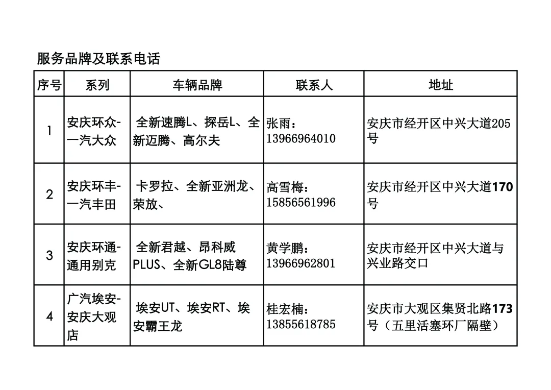 為感謝安慶職業(yè)教育集團(tuán)對安徽環(huán)新集團(tuán)及下屬子公司的關(guān)心支持,安徽環(huán)新集團(tuán)下屬公司安慶環(huán)新汽貿(mào)投資有限公司特制定安慶職業(yè)教育集團(tuán)教職工《購車、修車、續(xù)?!穬?yōu)惠方案,提供以下服務(wù)。