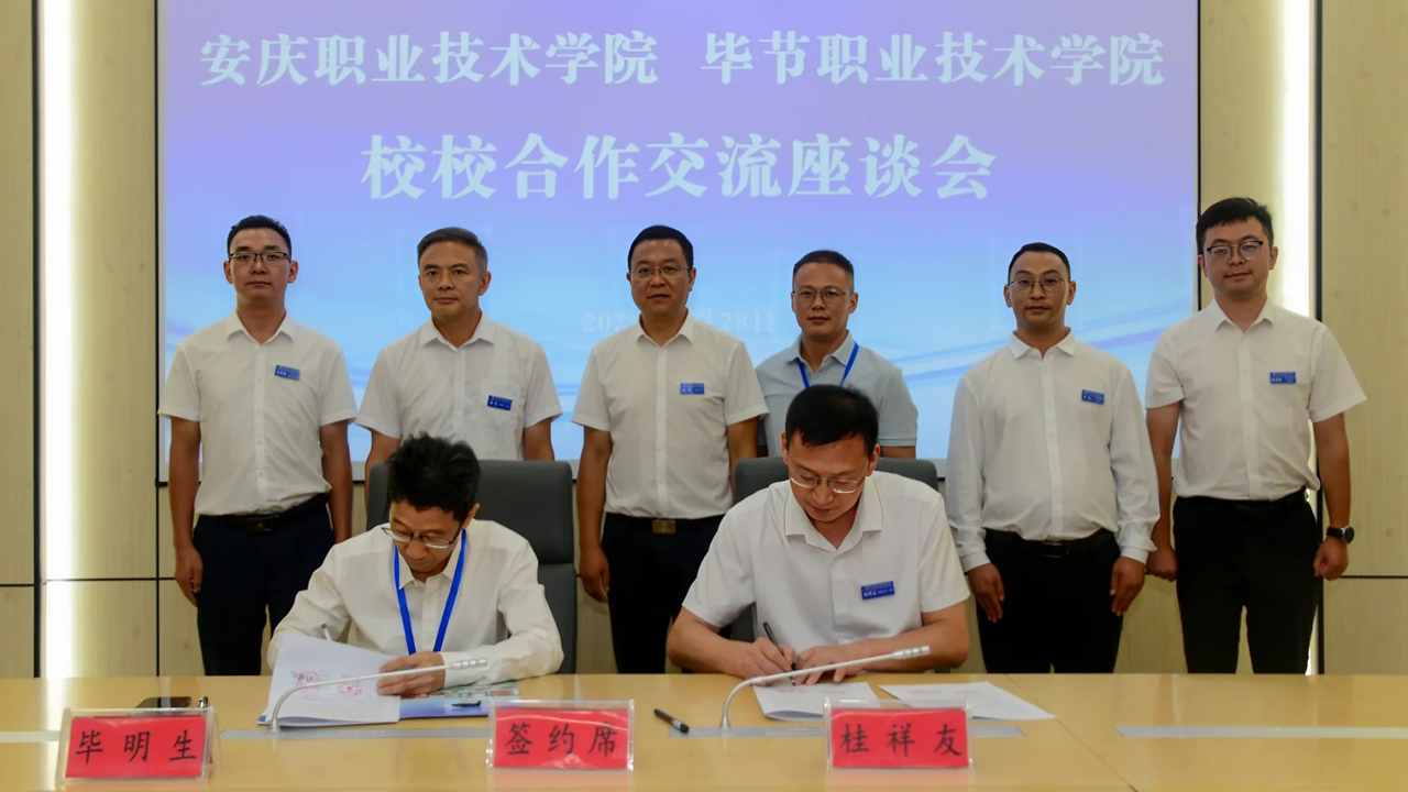 8月28日至29日,安慶職業(yè)技術(shù)學院校長畢明生應邀赴畢節(jié)職業(yè)技術(shù)學院參加2025中國-東盟教育交流周“校旅結(jié)合·職業(yè)教育助力鄉(xiāng)村振興”活動,并與畢節(jié)職業(yè)技術(shù)學院簽署框架合作協(xié)議。